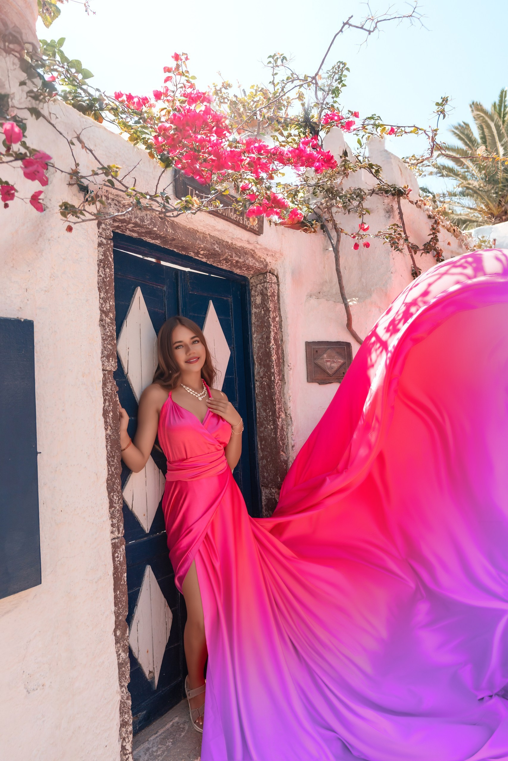 17. Fuchsia Flying Dress satin bare back XS-L |rent price 100 euro