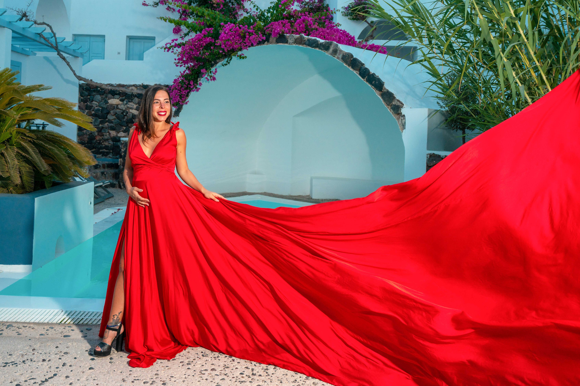 La taille de la robe est variable, n’importe quelle robe convient aux femmes enceintes, donc lorsque vous choisissez une robe, veuillez prendre au moins 1 taille en réserve nous devons nous déplacer vers différents endroits, à Oia nous devons monter et descendre des escaliers pour nous rendre sur les lieux, mais nous avons aussi des endroits plus proches et des itinéraires plus courts