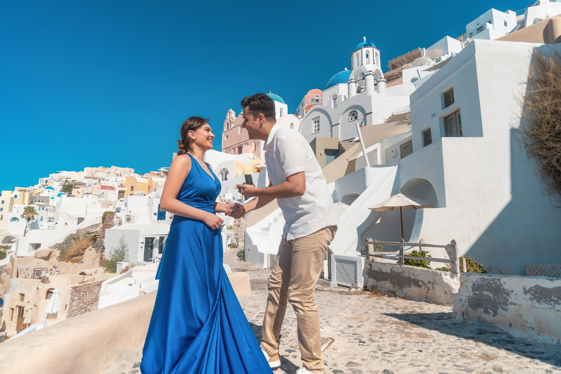 In the heart of Oia, Santorini, where white houses blend with blue domes and the sea sparkles under the Mediterranean sun, we captured the essence of eternal love. This couple danced through the picturesque streets, exchanging vows under the infinite sky, with flowing dresses swaying in the salty breeze. From tender embraces near the cliffs to intimate ring exchanges, these frames breathe pure romance. Santorini isn’t just a destination—it’s the perfect backdrop for your love story. Ready to create similar memories?